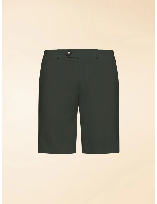 Questi bermuda di lunghezza media interpretano il casual estivo con una raffinatezza disinvolta e si propongono come un'alternativa elegante ai classici pantaloni lunghi nei momenti informali della bella stagione. Realizzati in SURFLEX®, il tessuto elasticizzato e traspirante dal look super opaco, sono disponibili in una gamma di tonalità distintive e presentano un design essenziale che si fonde armoniosamente con dettagli di ispirazione sartoriale. La cintura a passanti ,regolata da un bottone in corno, aggiunge una nota di eleganza classica, completata dalla pattina che copre la zip metallica. Le tasche laterali alla francese, unite alla precisione delle finiture, aggiungono un tocco di sobrietà sofisticata.