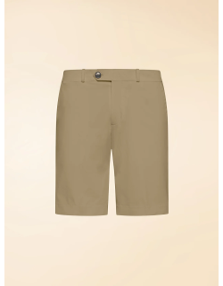 Questi bermuda di lunghezza media interpretano il casual estivo con una raffinatezza disinvolta e si propongono come un'alternativa elegante ai classici pantaloni lunghi nei momenti informali della bella stagione. Realizzati in SURFLEX®, il tessuto elasticizzato e traspirante dal look super opaco, sono disponibili in una gamma di tonalità distintive e presentano un design essenziale che si fonde armoniosamente con dettagli di ispirazione sartoriale. La cintura a passanti ,regolata da un bottone in corno, aggiunge una nota di eleganza classica, completata dalla pattina che copre la zip metallica. Le tasche laterali alla francese, unite alla precisione delle finiture, aggiungono un tocco di sobrietà sofisticata.