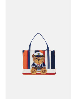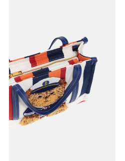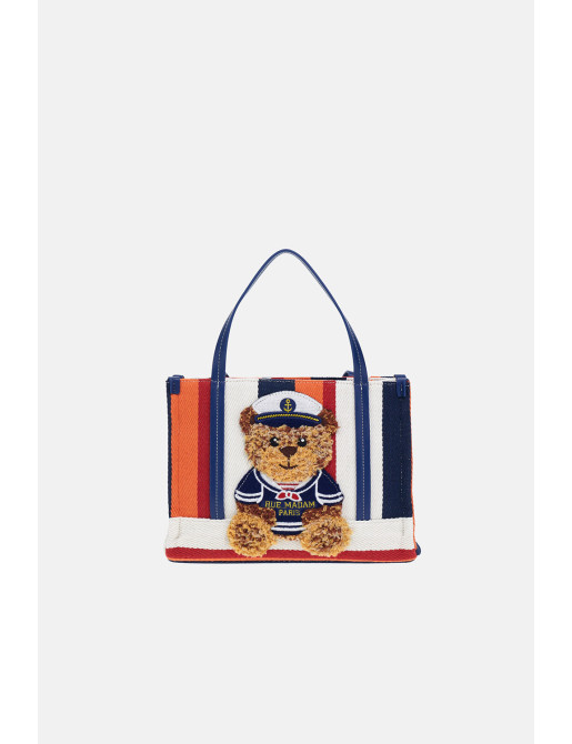 Mini Shopping bag morbida in canvas, dal design giocoso e contemporaneo, arricchita dal nuovo ricamo effetto peluche dell'orsetto Sailor Marvin, che dona un tocco originale e affettuoso. Il fondo a contrasto, insieme ai manici e dettagli in ecopelle, valorizza la struttura con eleganza. Chiusura con zip e fodera interna in cotone con tasca, ideale per una pratica organizzazione quotidiana. Dimensioni L 27 x H 20 x P 10 cm