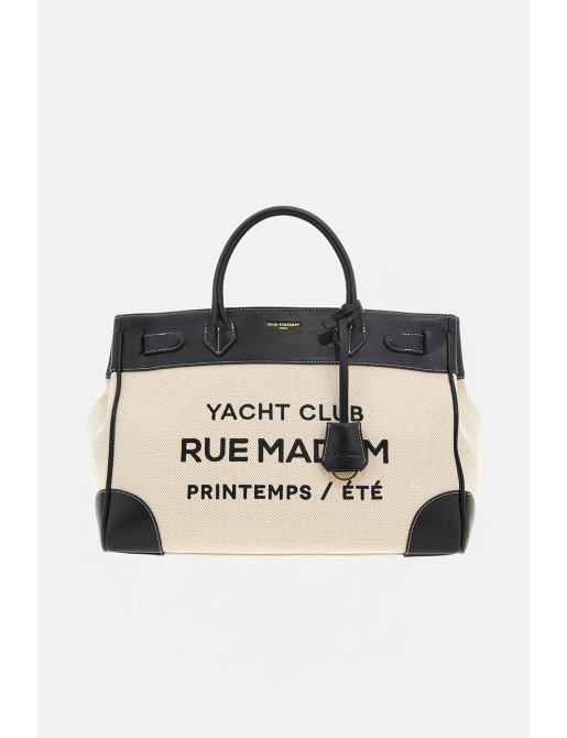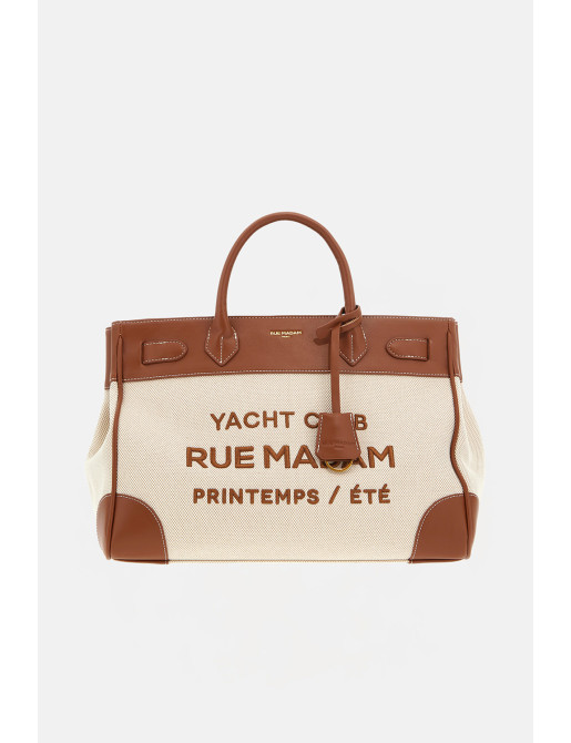 Tote bag in canvas dal design elegante e raffinato, valorizzata da profilature e dettagli in ecopelle con cuciture a contrasto, che ne sottolineano l’estetica ricercata. Il modello è impreziosito dal nuovo ricamo "YACHT CLUB", per un tocco distintivo e sofisticato. L’interno è completato da una fodera in cotone con tasca, ideale per una perfetta organizzazione quotidiana.Dimensioni: L 38 × H 27 × P 19 cm