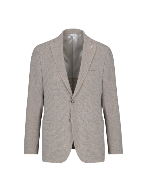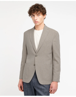 Giacca drop 8 semifoderata, chiusura due bottoni, due tasche a toppa e un taschino frontali, due spacchi sul retro, quattro bottoni ai polsi, finiture con impunture. Micro texture misto cotone
