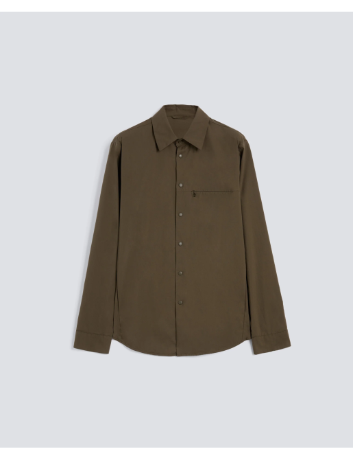 Camicia in popeline di cotone e nylon comfort, con bottoni a pressione a vista. Taschino con zip invisibile sul petto e due tasche a filo sui fianchi. Vestibilita regolare.