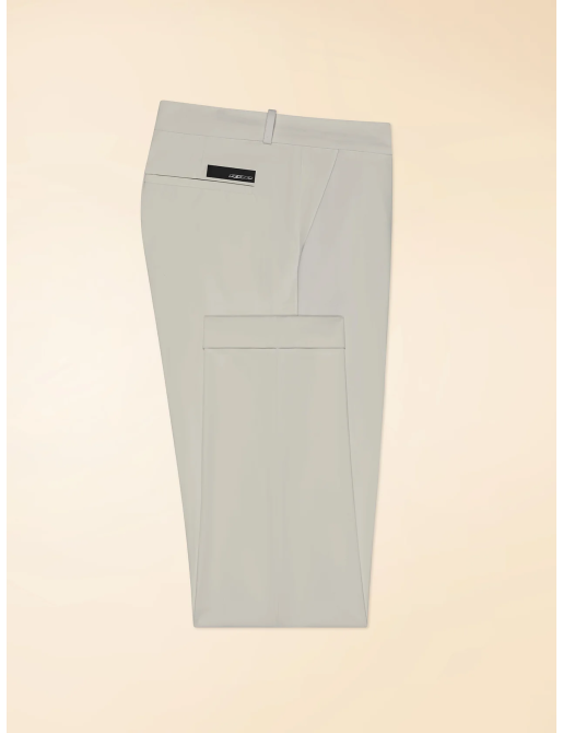 Un’espressione equilibrata di comfort, stile e versatilità: questo modello continuativo di grande successo non può mancare nel guardaroba maschile primaverile ed estivo. Realizzato nel nostro esclusivo tessuto stretch, fresco e traspirante, leggero e dalla mano liscia e morbida, il modello si distingue per l’aspetto super opaco che esalta la pulizia del taglio sartoriale. Il fit regolare è definito dalla vita a passanti, rifinita internamente dalla fascia stampata con il monogramma Razzle Dazzle tono su tono. La chiusura presenta un'elegante abbottonatura in corno con zip celata dalla pattina. Le tasche laterali alla francese dialogano con quelle posteriori a filetto, ravvivate dall'emblematico logo a microiniezione nero sul lato destro.