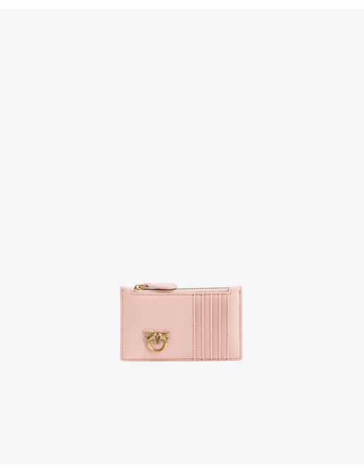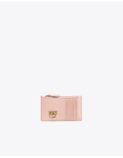 Porta carte di credito in morbida pelle mano seta. Personalizzato con placchetta in metallo logo Love Birds Diamond Cut. L'interno è foderato in polycotton. Chiusura con zip.
