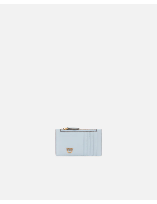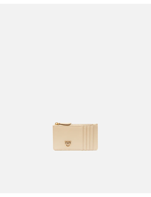Porta carte di credito in morbida pelle mano seta. Personalizzato con placchetta in metallo logo Love Birds Diamond Cut. L'interno è foderato in polycotton. Chiusura con zip.