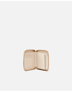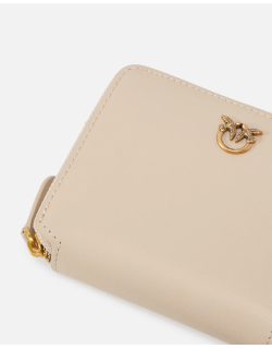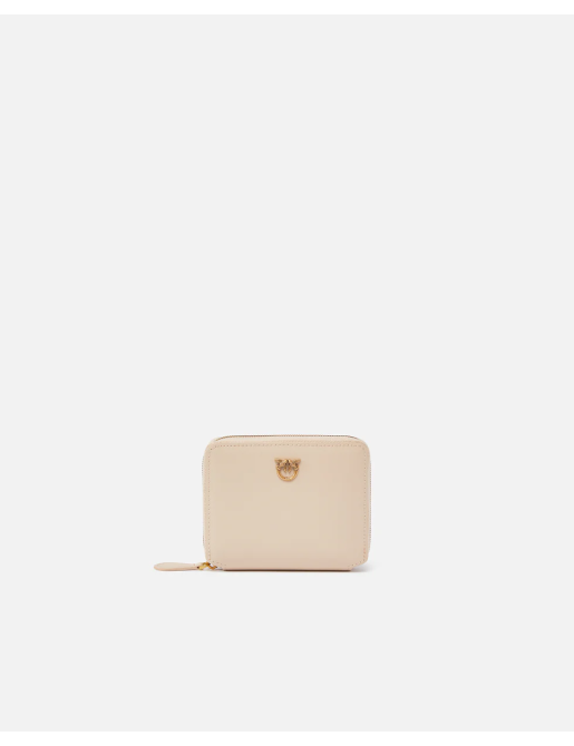 Portafoglio zip-around di forma quadrata in morbida pelle mano seta, personalizzato con placchetta Love Birds Diamond Cut su base in pelle. L'interno è foderato in polycotton. Chiusura con zip.