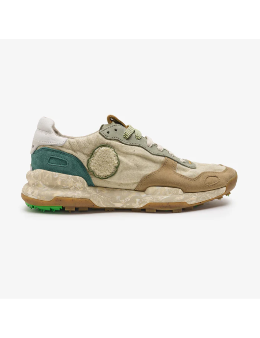 Chacrona, la nostra creazione ecosostenibile, prende il nome dalla foglia amazzonica utilizzata dalle tribù indigene per connettere corpo e anima. È la nostra interpretazione di una scarpa da cross-training degli anni '80, super comoda e resistente.