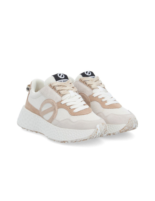 La mitica sneaker di NO NAME: La CARTER JOGGER! Si distingue per un'elegante combinazione composta da due materiali diversi: poliestere riciclato e certificato GRS da una parte, e una tomaia in scamosciato di vacchetta o una versione specchio dall'altra. Questo abbinamento unico è un perfetto mix di stile e longevità. Il connubio di materiali conferisce una texture accattivante e un look raffinato a questa sneaker, che è perfetta per uno stile urbano attuale.