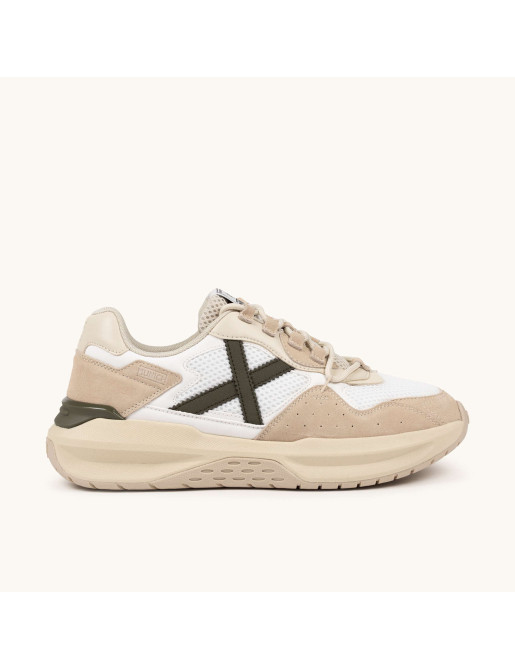 Queste sneakers presentano una silhouette unica che fonde linee dinamiche con dettagli innovativi in una combinazione armonica di toni beige, bianco e verde cachi. Il design del modello NEXA 20 cattura l'essenza della modernità attraverso un mix equilibrato di materiali che offrono un'estetica inconfondibile e attuale. Sono la scelta ideale per chi cerca una calzatura con personalità per l'uso quotidiano, perfette da abbinare a capi in denim durante le uscite urbane o per dare un tocco tecnologico a un outfit da ufficio rilassato. La loro suola voluminosa e la struttura ergonomica assicurano un comfort duraturo, adattandosi perfettamente alla frenesia della vita contemporanea.