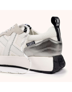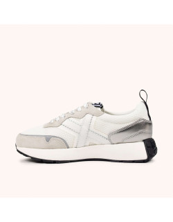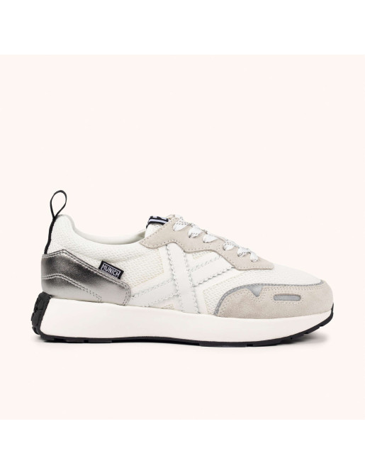 La scarpa MUNICH XEMINE WMN 102 nel colore bianco con sottili sfumature in grigio scamosciato e finiture in argento metallizzato rappresenta la pura eleganza sportiva nel restyling di un classico del running che riflette l'equilibrio tra l'eredità e l'autentica essenza del marchio con rinnovati e intramontabili tocchi di stile. Questo modello dalla silhouette femminile combina texture tecniche e pelle di alta qualità per offrire leggerezza e sofisticatezza in ogni passo rappresentando una scelta ideale per completare un look casual da ufficio, godersi lunghe passeggiate urbane in totale comodità o per vestire con stile in eventi sociali del fine settimana donando un'aria dinamica e sofisticata.