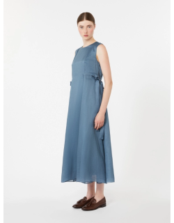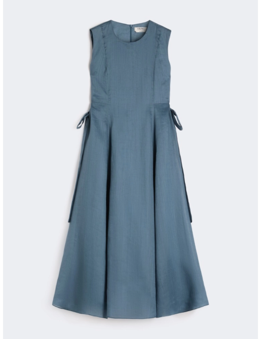 Abito lungo smanicato con tagli verticali e coulisse sul retro, a definire la silhouette.