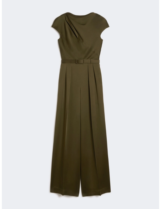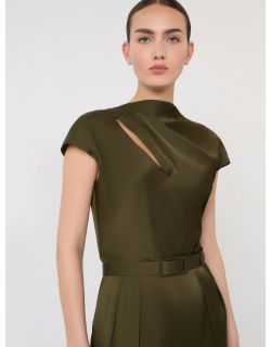 Tuta smanicata con pantalone ampio e corpetto drappeggiato con dettaglio cut-out obliquo sul davanti.